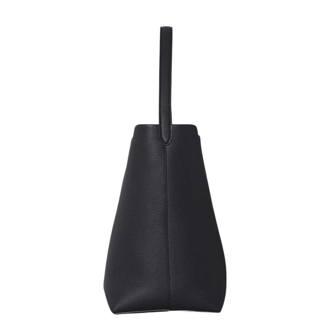 The tote’s design is characterized by its spacious interior, which provides ample room for daily essentials and more, making it a practical yet stylish choice for both work and casual outings. The Row interior is typically lined with a soft fabric, offering a touch of luxury and ensuring that contents are well-protected. A single, discreet pocket inside helps organize smaller items, maintaining the bag’s streamlined appearance.