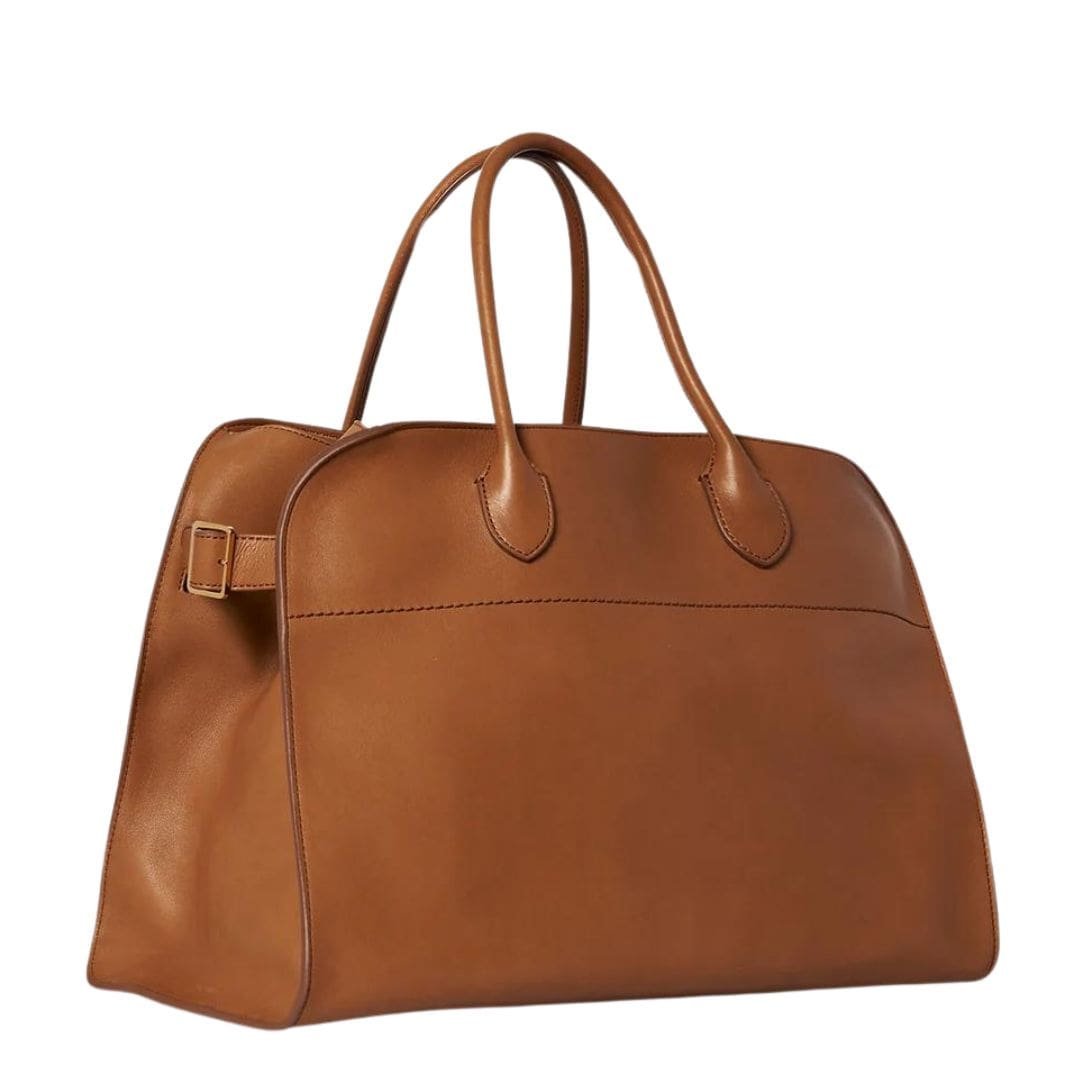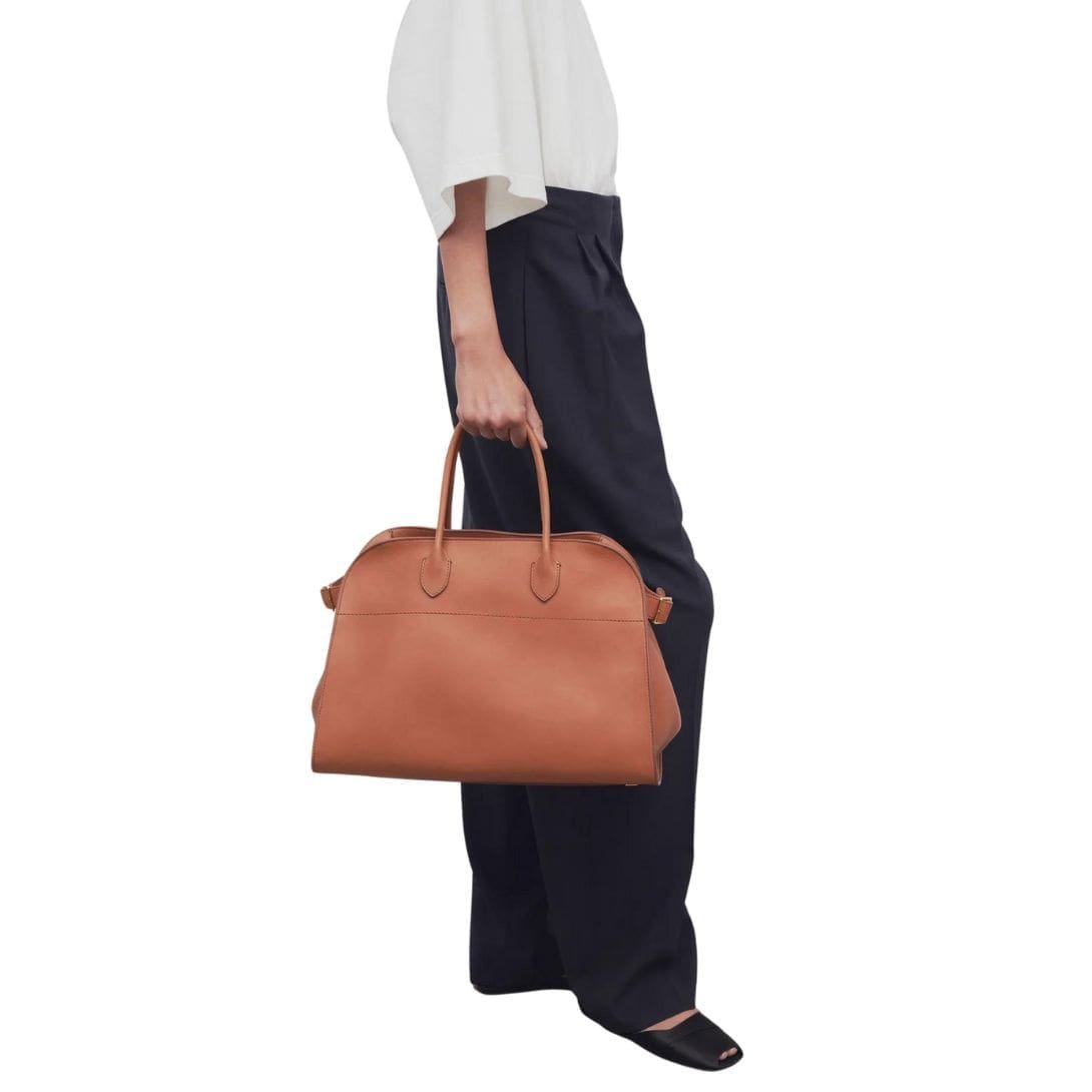 The Row Soft Margaux 15 Bag in leather epitomizes understated luxury and elegance. This handbag, crafted by the acclaimed fashion house The Row, is a testament to minimalist design and high-quality craftsmanship. The Row, founded by Mary-Kate and Ashley Olsen, is renowned for its commitment to creating timeless pieces that emphasize refined materials and meticulous attention to detail.